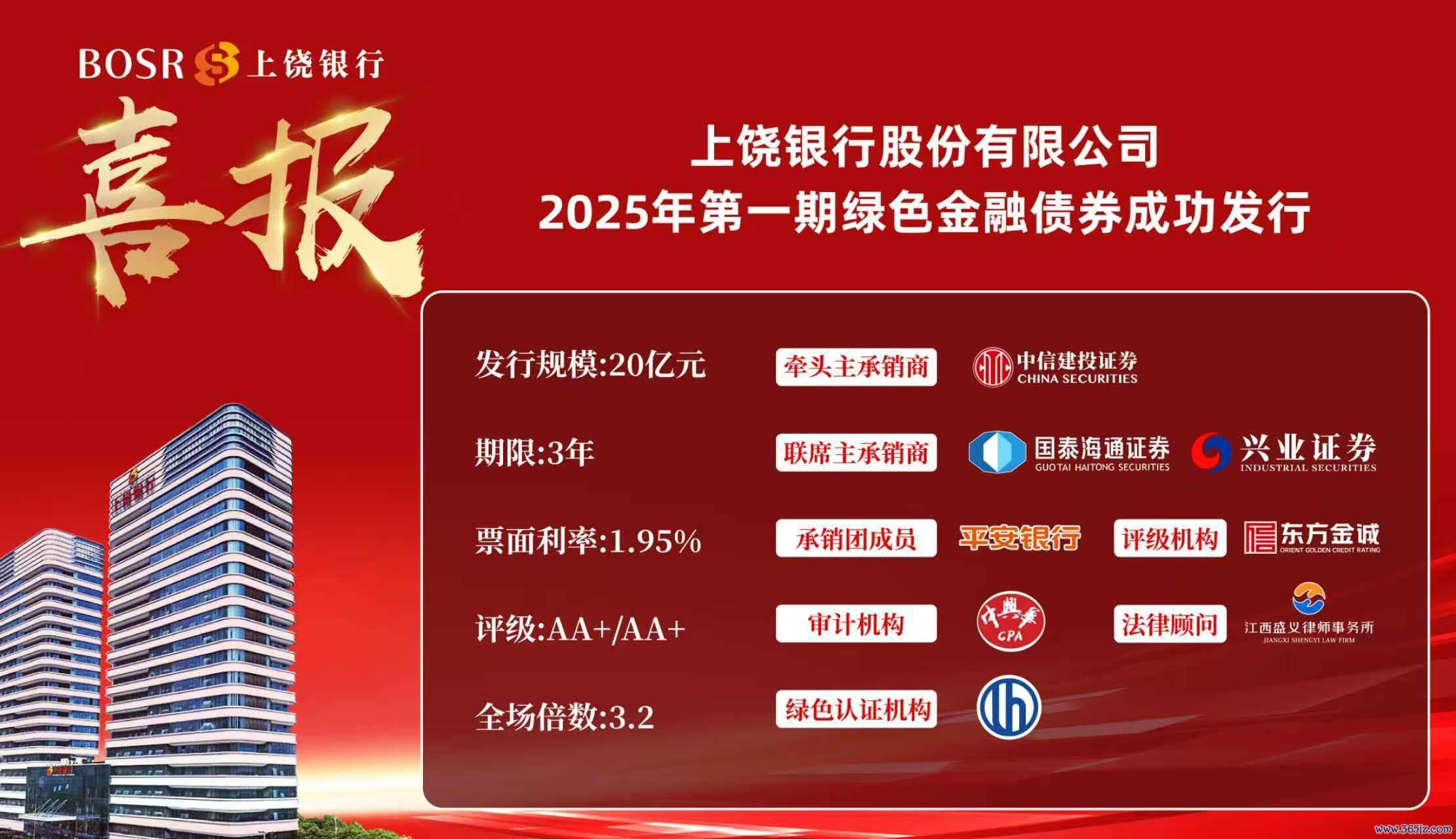 12月16日,在中国东说念主民银行江西省分行、国度金融监督解决总局江西监管局的引导下,上饶银行告捷簿记刊行绿色金融债券。本期债券刊行领域20亿元,期限3年,票面利率1.95%,得到了生意银行、证券公司、基金公司等多元投资者的奋勇认购,全场认购倍数3.2倍。本期债券的召募资金将依据适用法律和监管部门的批准,用于欢娱《绿色金融援手形态目次(2025年版)》的绿色产业形态。